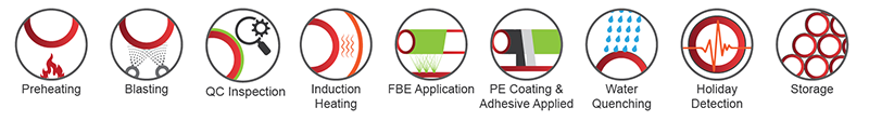 External polyethylene coating is a plant-applied coating system applied externally to provide excellent anti-corrosion protection for steel line pipes and fittings, intended primarily for buried or submerged service for water or oil and gas pipeline system, including two-layer (2LPE) and three-layer (3LPE) coating systems, whereby a copolymer adhesive is interposed between a bare substrate or high performance fusion bonded epoxy and the outer layer of polyethylene which provides mechanical protection at moderate operating temperature.